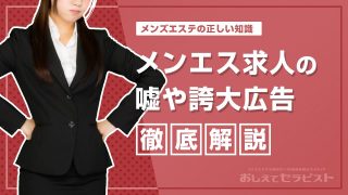 このページでは、一般的な求人サイトなどでは教えてくれない「メンズエステ業界の正しい知識」をお伝えします。セラピストにとって不都合な内容であっても包み隠さず解説していますので、自分の身を守る為にも一読してください。
